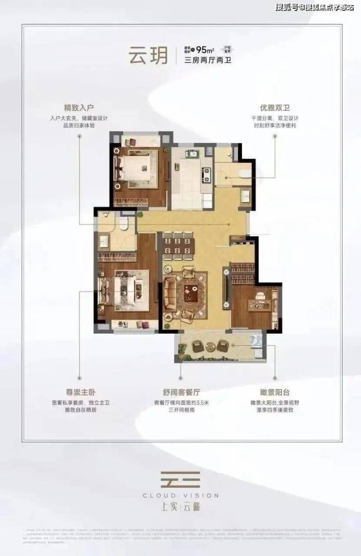 【上实·云端】售楼处电话:400-885-5420✨✨主力户型包括建面约95㎡三房两厅两卫,约125㎡四房两厅两卫: