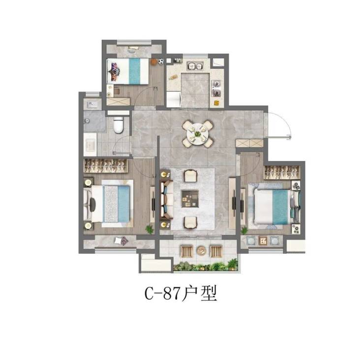87平:三房二厅一卫
