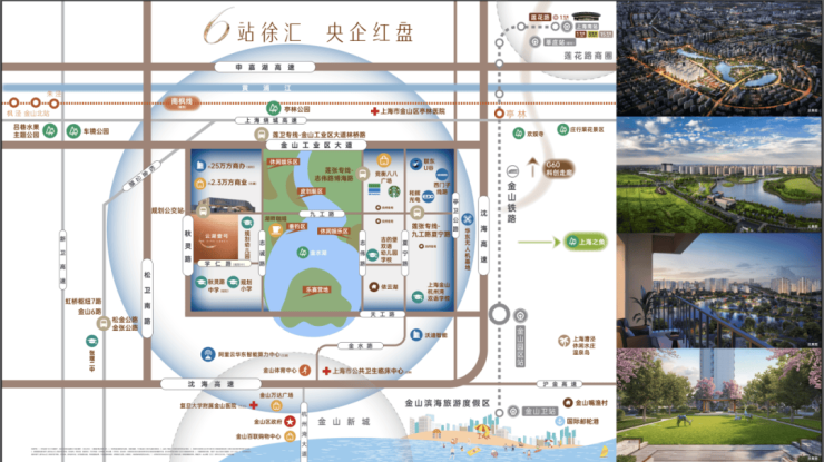 22号线金山铁路:金山园区站上车仅6站约50分钟到达上海南站,即可换乘1、3、15号线即可到达市区各个位置。