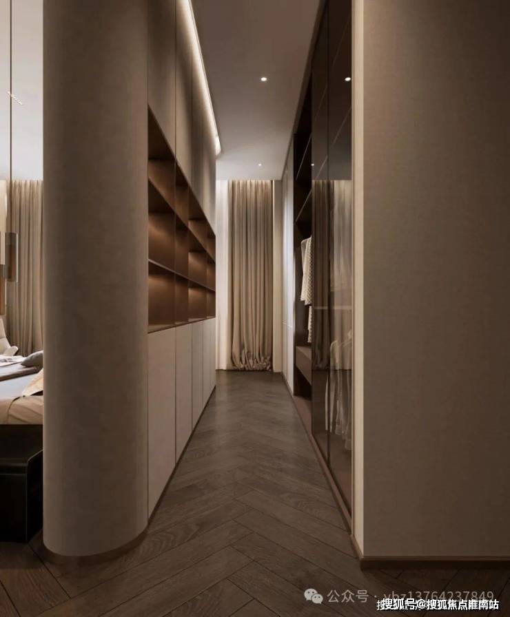 • 整墙玻璃衣帽间(爱马仕专属格位),收纳品味与锋芒。