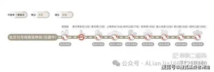 5号线、15号线南延伸段(在建中)、市域嘉闵线南延伸段﹙规划中﹚、市域奉贤线(规划中)及南枫线(在建中)