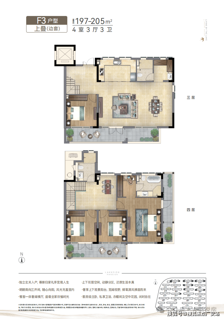 融合古代官式建筑,用逐层退台的方式,将叠院的阳台和露台面积扩展到最大,可谓是“层层是花园,户户享园林”.A区新推中式叠院,推窗即可享受无界湖景风光,实现临湖而居的美好愿景.