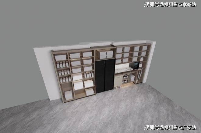 主卧和约99平户型一样,衣柜更大形成衣帽空间,还交付有半开放式、类似于酒店的迷你吧设计: