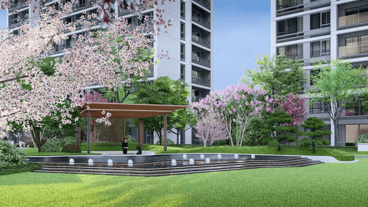 社区以“现代花园社区”为理念,打造星光连廊、阳光大草坪、艺术凉亭、儿童趣玩吧等六大主题空间,种植二十余种乔木灌木,实现四季有景。人均绿化面积达5.0㎡,远超区域平均3.2㎡,居住静谧性突出。