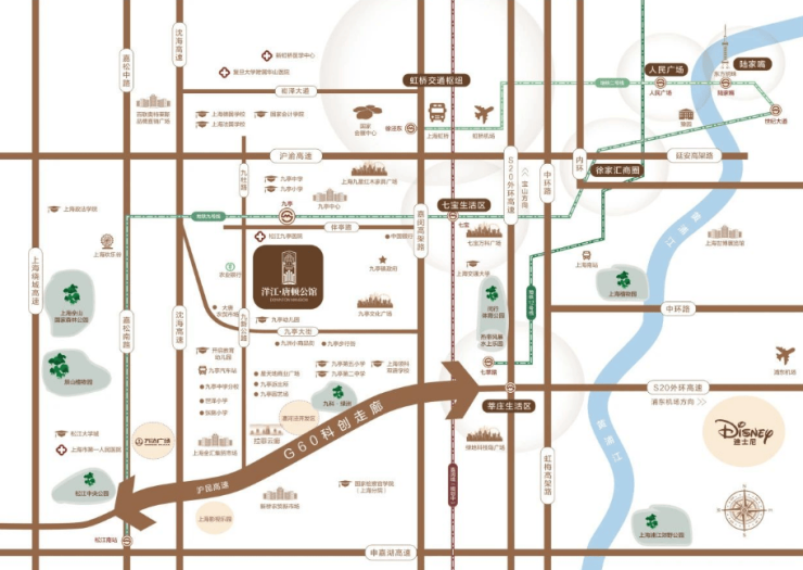 论位置关系,九亭既是整个松江区更接近市中心的板块,又处于大虹桥商务区的辐射区域,在大虹桥与G60科创走廊双重赋能下,九亭板块的性价比就更加凸显了。