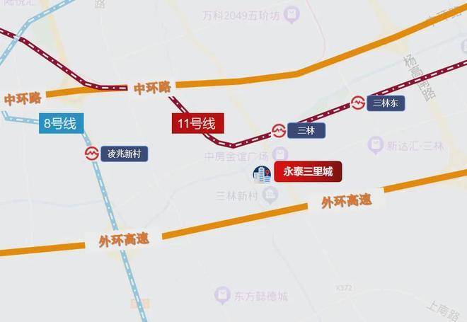 ②通勤升级:项目位置上更靠近中环和前滩,周边五轨环绕,与11号线三林站直线距离仅约200米,1站直达前滩;