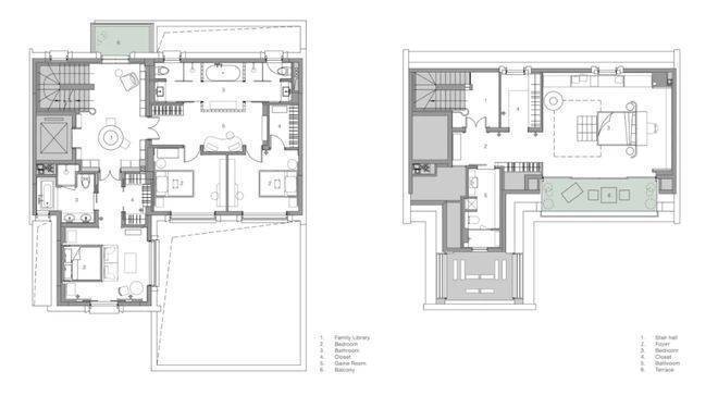 二层设有儿童区和父母房间。所有房间都围绕庭院布置,以充分利用景观视野。我们还将楼梯厅空间改造成家庭图书馆——在这个原本私密的楼层创造了一个公共空间。这为家庭成员增加了除客厅和地下室之外的又一互动空间,强化了我们对现代上海家庭更多交通和爱的理念。