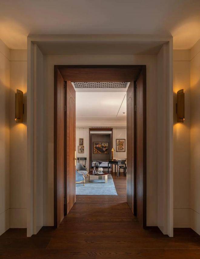 深色烟熏橡木搭配Eric Morris定制的黄铜五金件,将上海老洋房的韵味和气质在精致的细节中得到完美诠释。