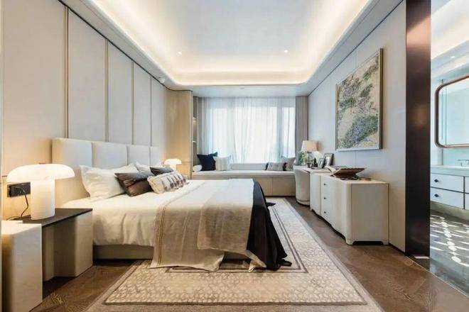 三开间朝南,搭配全房间飘窗设计,让室内采光充足,也大幅增加了使用空间,尤其是西边套主卧自带270°景观飘窗,可直面代建公园的景致。