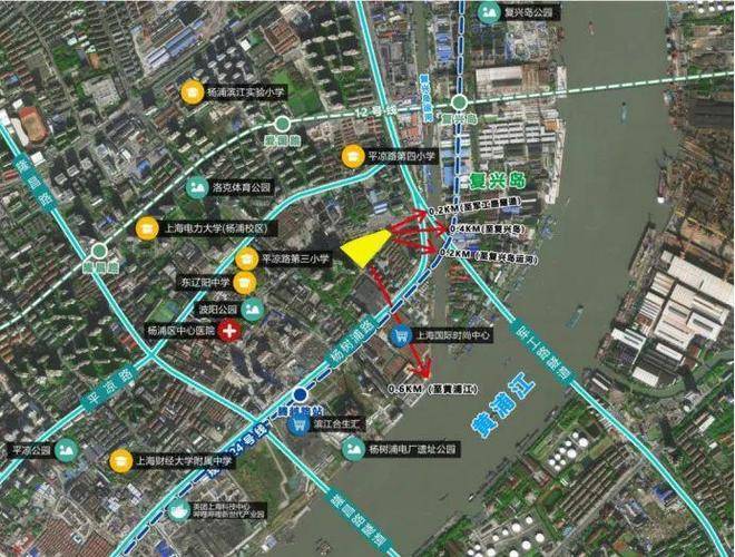 该地块位于杨浦滨江的南段,直线距离黄浦江仅约500米。
