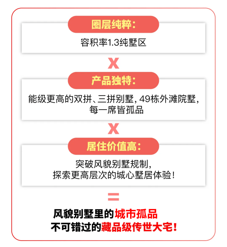 第一、目前市面上大多数风貌别墅受限于指标,普遍采用超高层+别墅的高低配组合,圈层不纯粹,花了买别墅的钱,却享受不到应有的生活质感和圈层价值!而越秀·外滩樾是容积率1.3的纯墅区,圈层纯粹,墅居氛围浓烈!