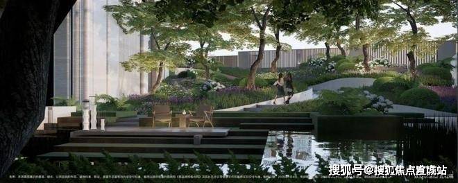 小区做了抬高处理,整体抬高,最高处超过7米,整个小区形成了错落的格局,在小区内部做台地景观。所谓台地,便是将小区内地面整体抬高,与市政道路形成一定的高度落差,这样建造的社区气势磅礴,居高临下。通过景观设计,将小区景打造成了立体台地花园,设置缓坡、下沉式花园、台阶等,让整体景观表现出立体层次感,错落有致。