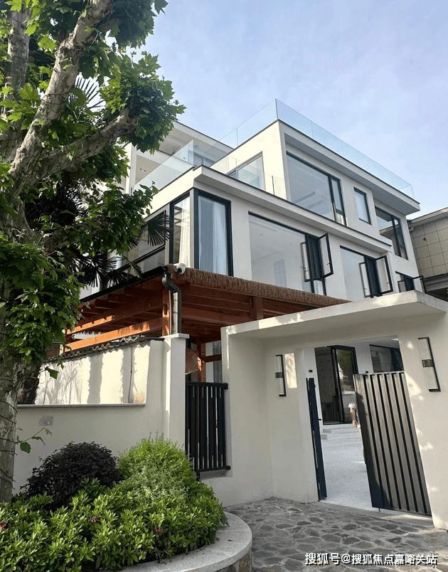 整体没有过多繁杂的色彩堆砌,全白色的外墙加上黑色铝合金门窗的点缀,简洁而纯粹,给人一种宁静而治愈的感觉。