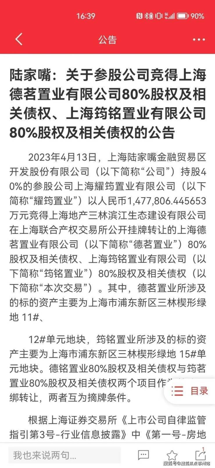 2023年3月7月,上海地产集团三林滨江南片区项目上架上海联合产权交易所进行股权交易,本次出让2个项目包,合计14块地,最终4月由陆家嘴集团斥资约147.78亿拿下。