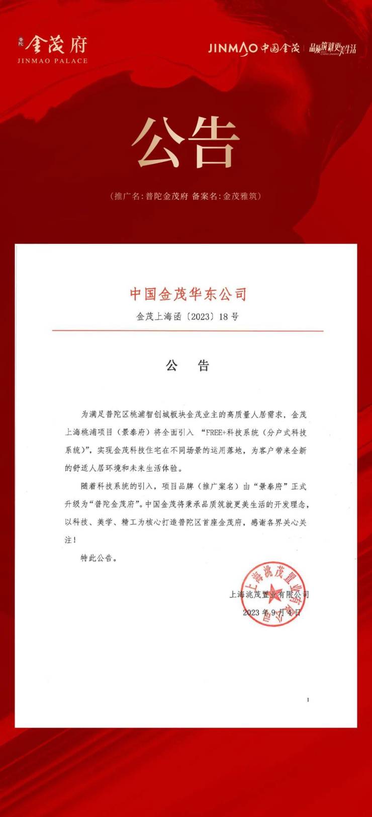 2023年9月4日,中国金茂华东公司发布一则公告:金茂上海桃浦项目(景泰府)更名为普陀金茂府营销中心电话:400-8855-420【☎营销中心已认证】。