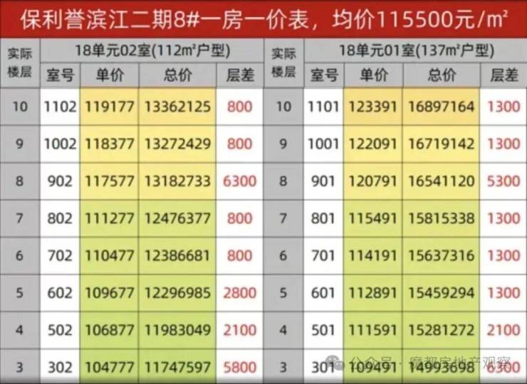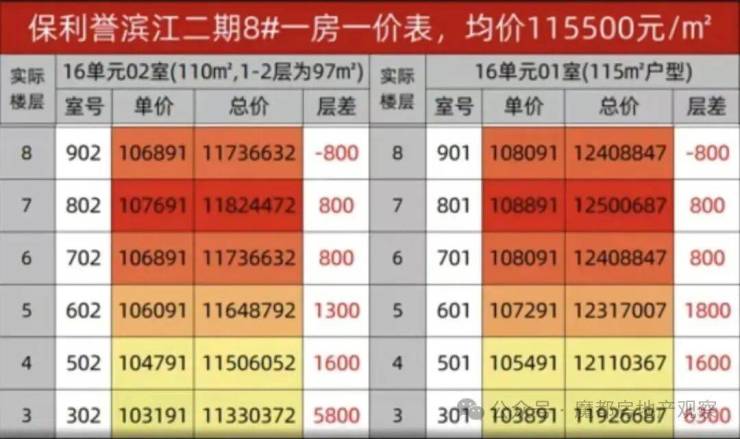 8号楼低区房价表