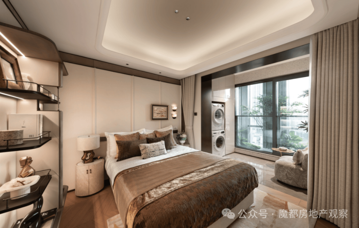 最后,约139㎡景观四房顶配产品则是高端改善的“奢适范本”,约94%的极致实得率让居住面积超130㎡,对标传统高层豪宅170㎡+的户型配置。