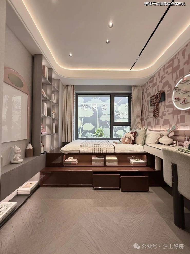 北向卧室的S墙设计,则可以做成一整面的收纳架,书籍或玩具都有了足够的盛放空间。