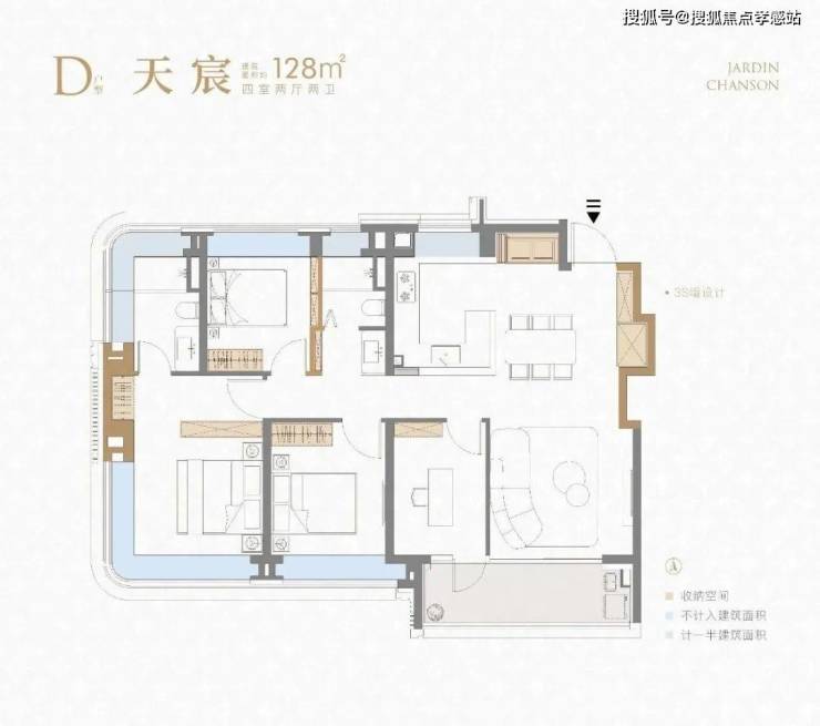 项目建面约128㎡4房同样出彩。