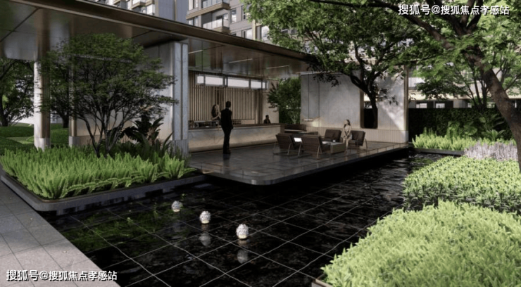 以酒店的礼序、营制归家的仪式:部分入口酒店式环岛落客区的设计,搭配水景营造,拉满归家的仪式感。