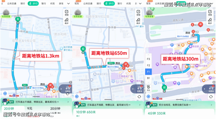 不同的距离步行到地铁站的差距有多少呢?来看百度地图的测距: