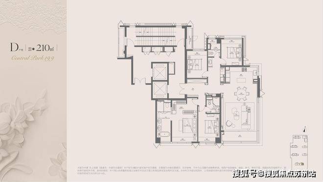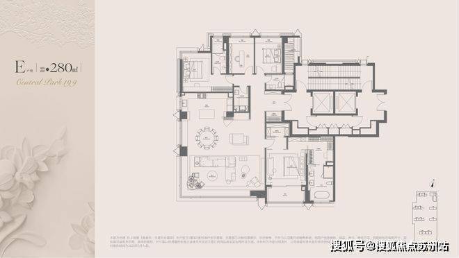 设计为三房,两间为套房,北次卧亦接近套房配置,尊崇感十足。超大南向面宽与巨型横厅赋予空间极高灵活性,可适配书房、瑜伽室等多重场景。