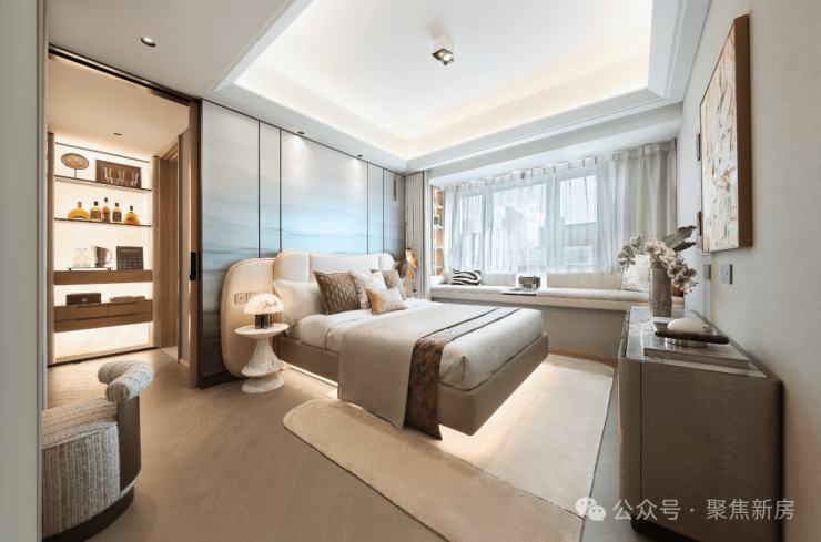 南北双套房的设计,媲美豪宅行政级主卧套房体验,步入式衣帽间+私享卫浴及南向超阔飘窗!