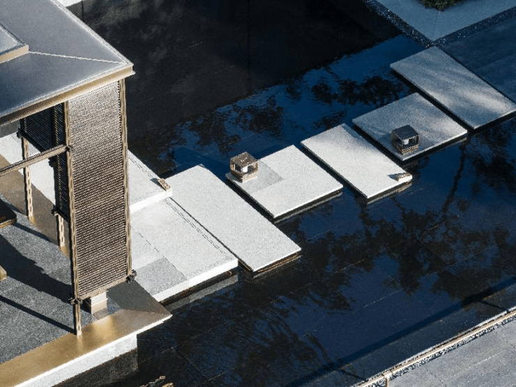 此外,还选用与建筑同等标准的爱马仕专色大象灰石材,足以体现细节与匠心,景石采用顶级奢石“中国黑老石皮”,千里迢迢空运而来,置于水境空间形成山水交融的意境,更显瑧悦高定奢境匠艺。