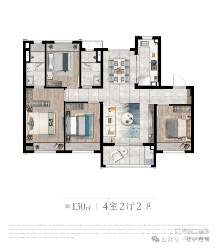 [C户型 ] 建筑面积约130㎡ | 4房2厅2卫