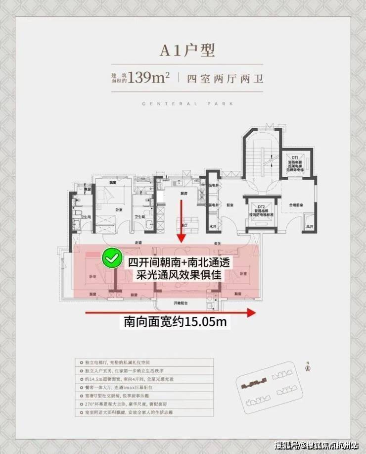 深,约15.05m的南向奢阔面宽,无论是采光感、尺度性都拉到了极致,享受城央豪宅级别的采光。