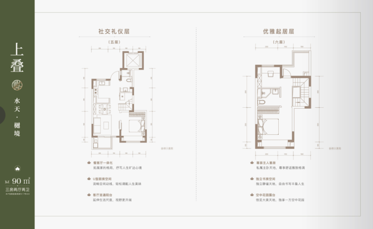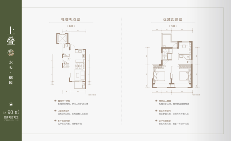 上叠产品都是带有空中花园露台,日常聚餐、烧烤、开party等娱乐活动有大展拳脚的空间,同时客餐厅一体化+U型厨房空间+尊崇主卧套房,户型设计合理,格局方正。