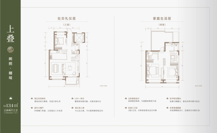 建面约137㎡下叠,四房两厅三卫全能格局,非常适合二娃家庭以及三代同堂。