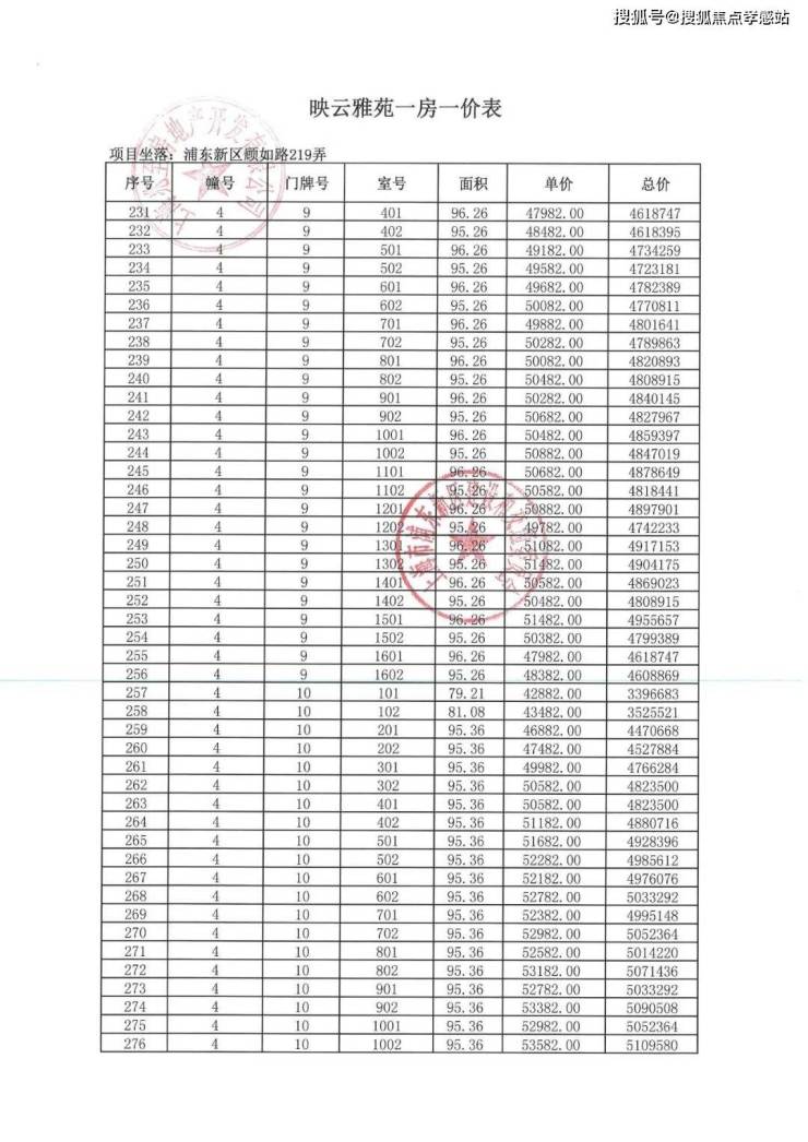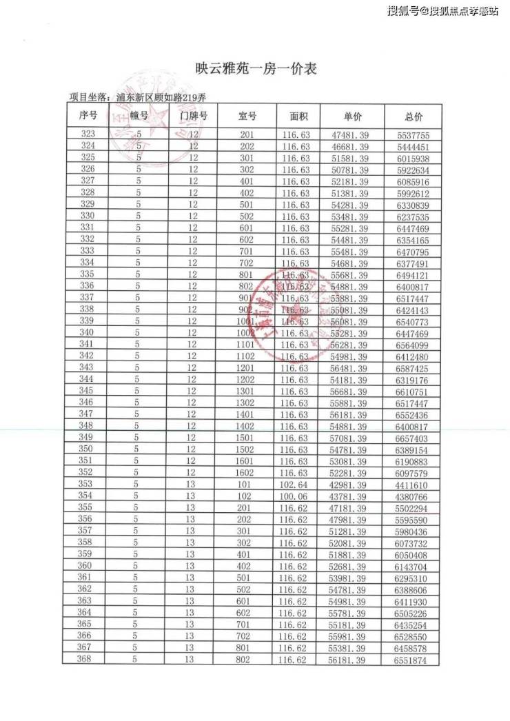 「一房一价表」