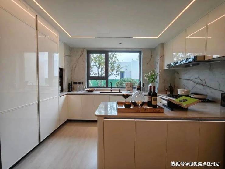 超一线装标,全部给足: 厨房间博世双开门冰箱、凉霸 、嘉格纳四件套、弗兰卡水槽。柜体采用的是和 19 . 5 万的绿城同款柜体——威乃达,还有弗兰卡的大单槽、旭格的门窗。卫浴采用唯宝、高仪等品牌 ....... 投入成本非常高。