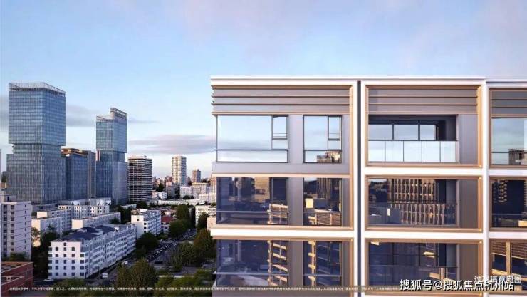 保利誉滨江基底采用质感厚重的石材,上层第一界面则以全铝板+玻璃幕墙为主,更突破性地实现了“四面平权”设计——
