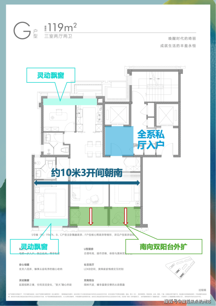 户型设计全屋飘窗与大尺度阳台,采光度全面提升,空间感倍增!全屋赠送飘窗面积约12㎡(不计容)可自主改造,阳台总面积约14㎡(一半计容)搭配约7㎡的入户私厅,户型实得率超高!
