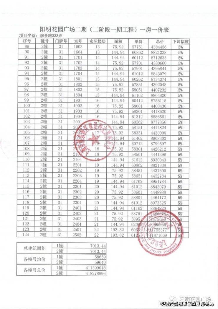 一房一价表如下