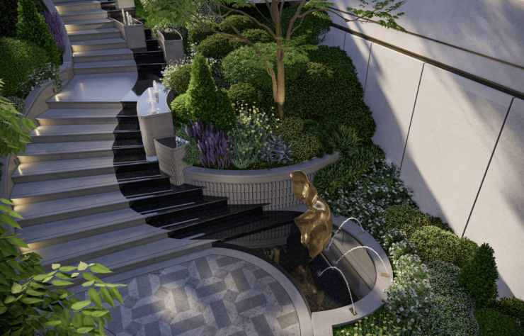 项目整体建筑排布为南低北高,相当于依山而建,顺势而为,具有豪宅别墅的围合式设计,有藏风纳气,聚财之意。33套世家名邸,一席一定制,一栋一珍藏。