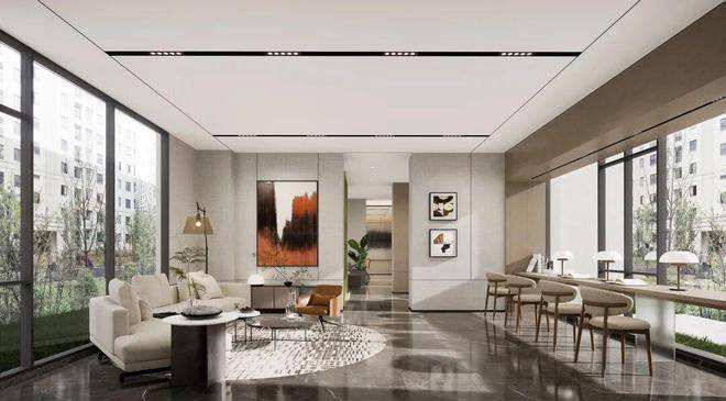 并且曲线型的洄游动线,更是将 “艺术前场、迎宾水景、邻里客厅、共享客厅、四季识园、无界社交剧场、儿童大象乐园、流水林泉、元气交流空间”等九大景观功能空间串联成线,营造出移步异景的归家享受与缤纷生活场景。
