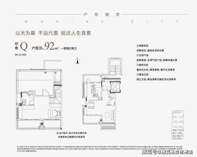 部分建面约100-101㎡H边厅户型,全景阳台搭配主卧L型转角大飘窗,三面采光+270°环幕视野,景观面堪比市区滨江顶豪,白天远眺松江人文,晚上看脚下星火流淌,十分惬意。