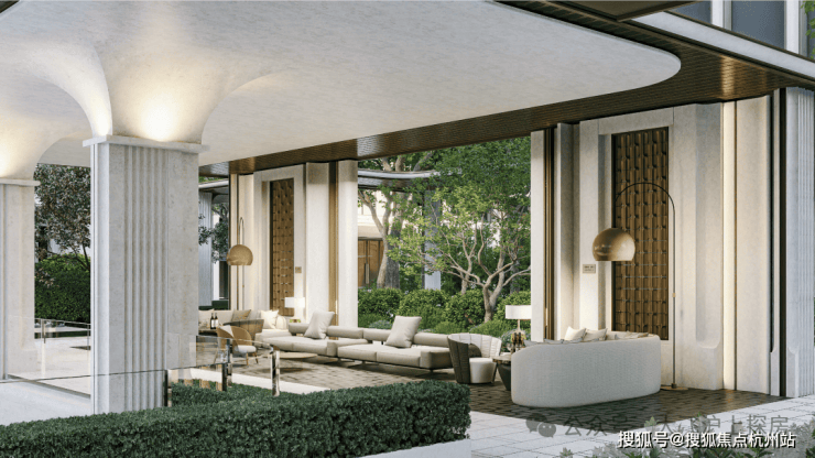 转角处创新使用 2.4米×3.6米超大弧形落地玻璃 ,既柔化建筑轮廓,亦最大化引入江景与城市视野。立面设计与黄浦江波光呼应,成为滨江天际线的视觉地标。