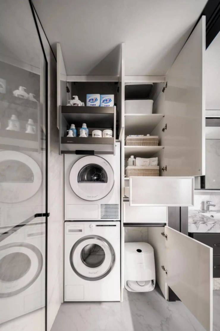 标配家政空间,洗衣烘干机、清洁柜齐全;