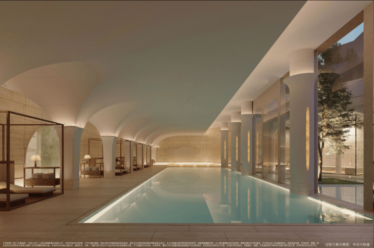 另一处会所聚焦商务与疗愈,无边界泳池连下沉庭院,室内外双幕水剧场让空间在开放与静谧间切换,成了有格调的社交地。
