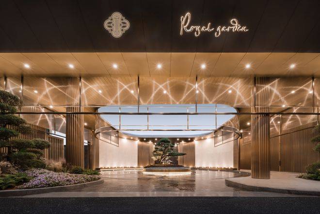 入口处酒店港湾式落客空间,艺术感造型树,蓝翡翠奢石达到第一眼的惊艳;内部精致典藏的水院空间,以雕塑、喷泉水幕、造型树经典组合,打造景观点,更大地扩充与景观的接触面,度假的松弛感油然而生。
