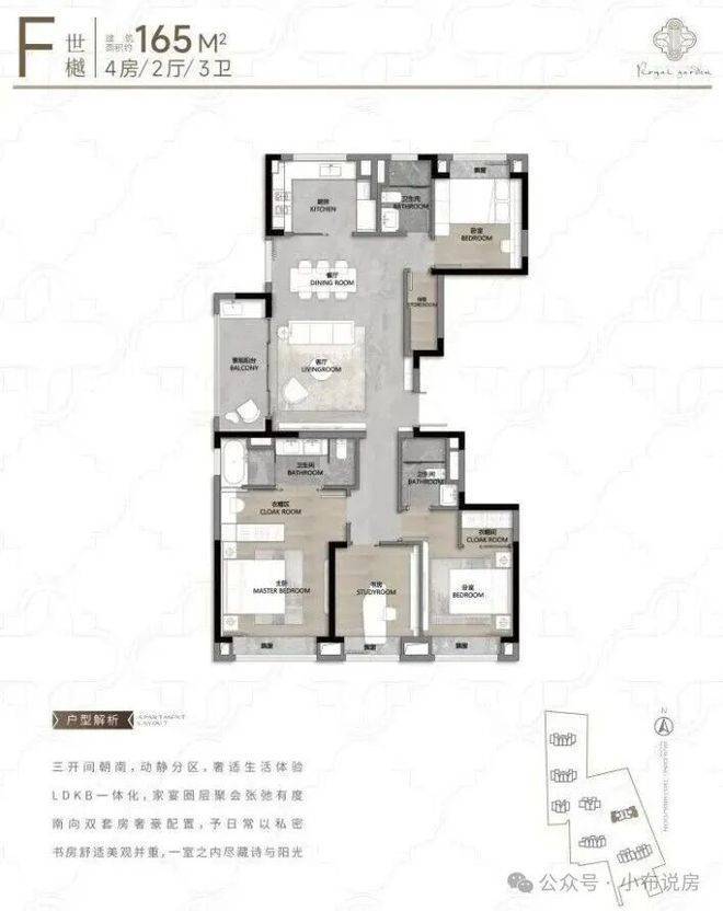 动静分离+客餐厅一体化设计,功能区和休息区互不干扰,客餐厅、厨房等公共活动区集中在一侧,卧室等休息区全部一侧,保证了私密性!