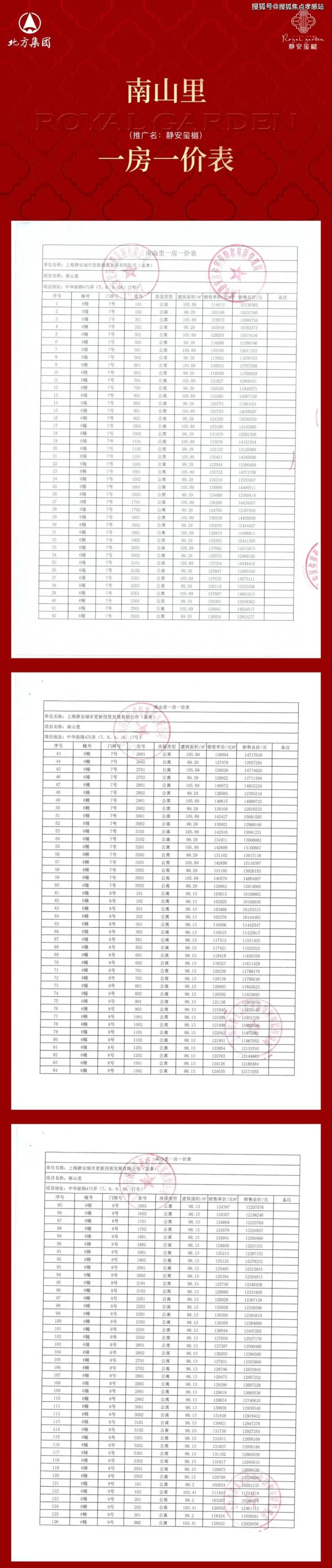 一房一价表: