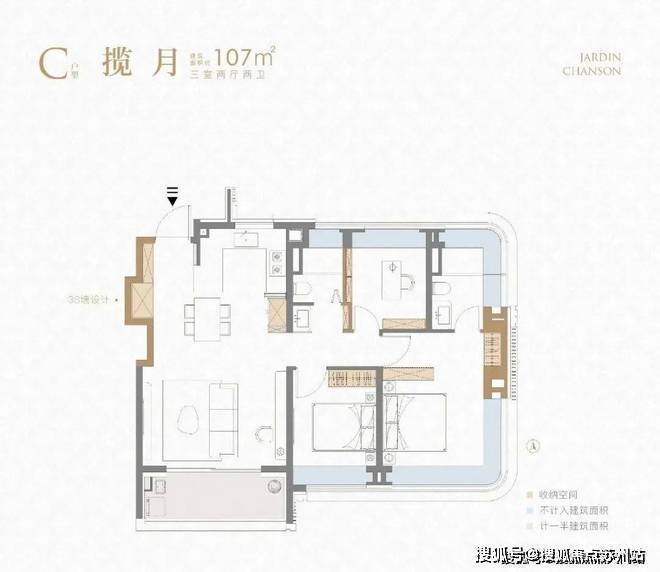 不夸张的讲,这个 建面约107㎡刷新了我对百平三房的新认知,据悉该户型或将申请专利