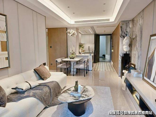 【海上·清和玺】希望业主的每一次归家,都能有属于自己的社交空间。整个前厅的接待空间不是一个过渡空间,而是一个真正为归家营造惬意分享的生活场。