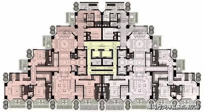 项目分三期开发,2号楼户型分布为一层4户,中间两套为348平米边套为680平米复式,总楼层39层,有两层为避难层,避难层会改造成绿化休闲区。