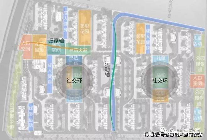 运动轴-中央康养跑道,200米南北景观中轴,形成社区活力之源;